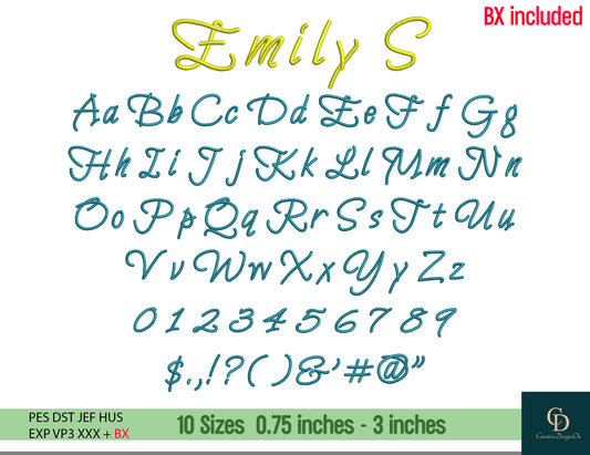4 Machine Embroidery Fonts, BX, PES, DST Cursive, Monogram Script Alphabet, Satin Font, Boho Signature Font, 10 Sizes