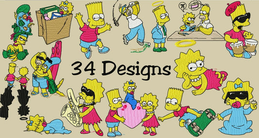 MACHINE EMBROIDERY DESIGNS - 34 SIMPSONS CARTOON DESIGNS- PES HUS DST
