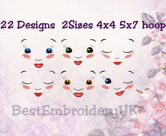 DOLL FACE Machine Embroidery Designs - 22 Designs in 2 Sizes - PES DST
