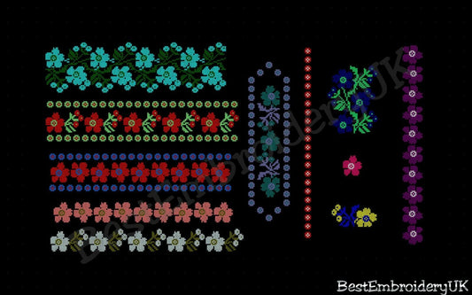 MACHINE EMBROIDERY DESIGNS - FLOWERS EMBROIDERY - DRESS Embroidery - H