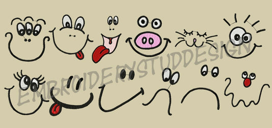 DOLL FACE Machine Embroidery Designs - 67 Funny Faces Designs - PES DST