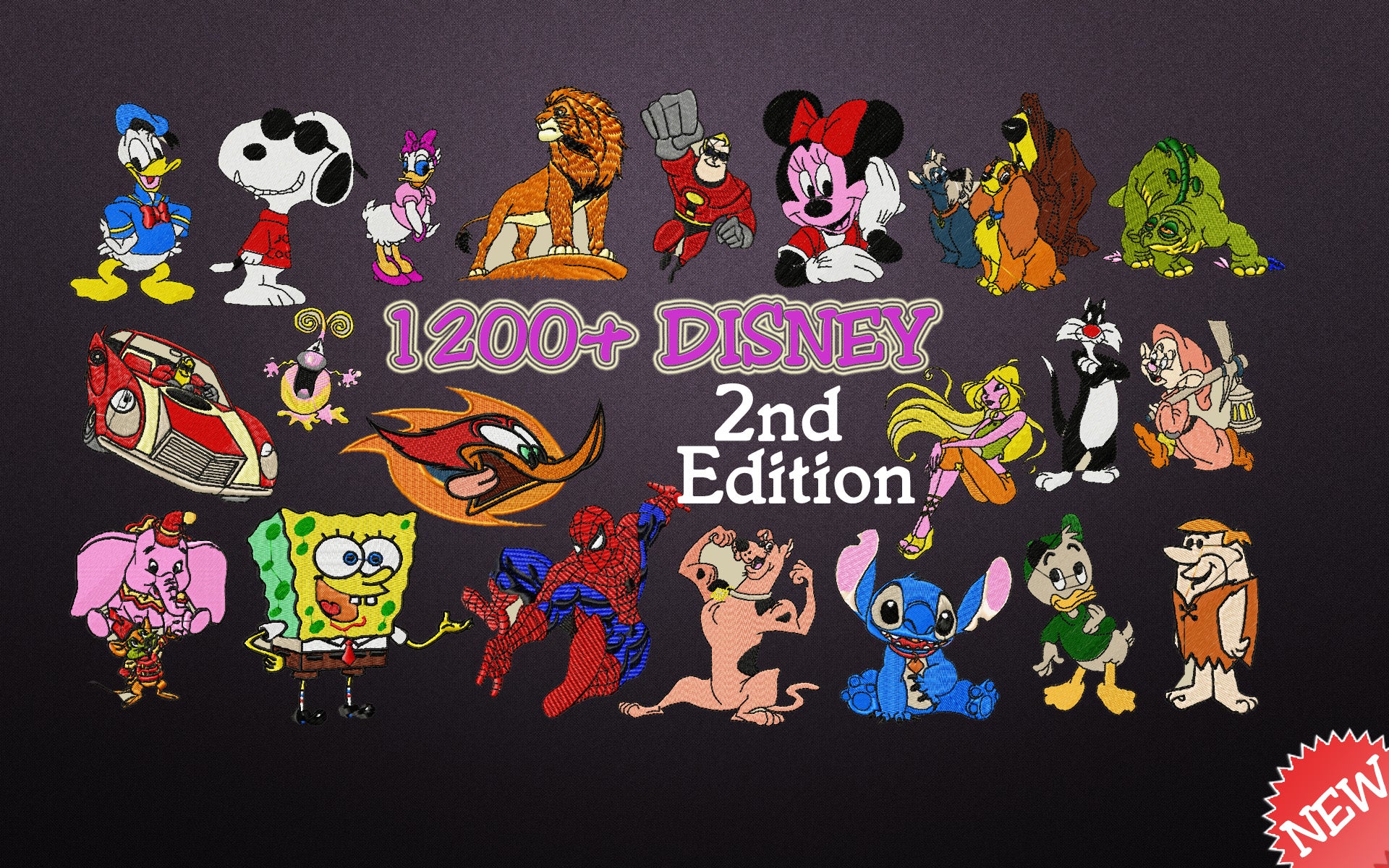 MACHINE EMBROIDERY DESIGNS - OVER 1200 TV CARTOON DESIGNS- PES HUS DST JEF EXP XXX VP3 MULTIPLE FORMATS
